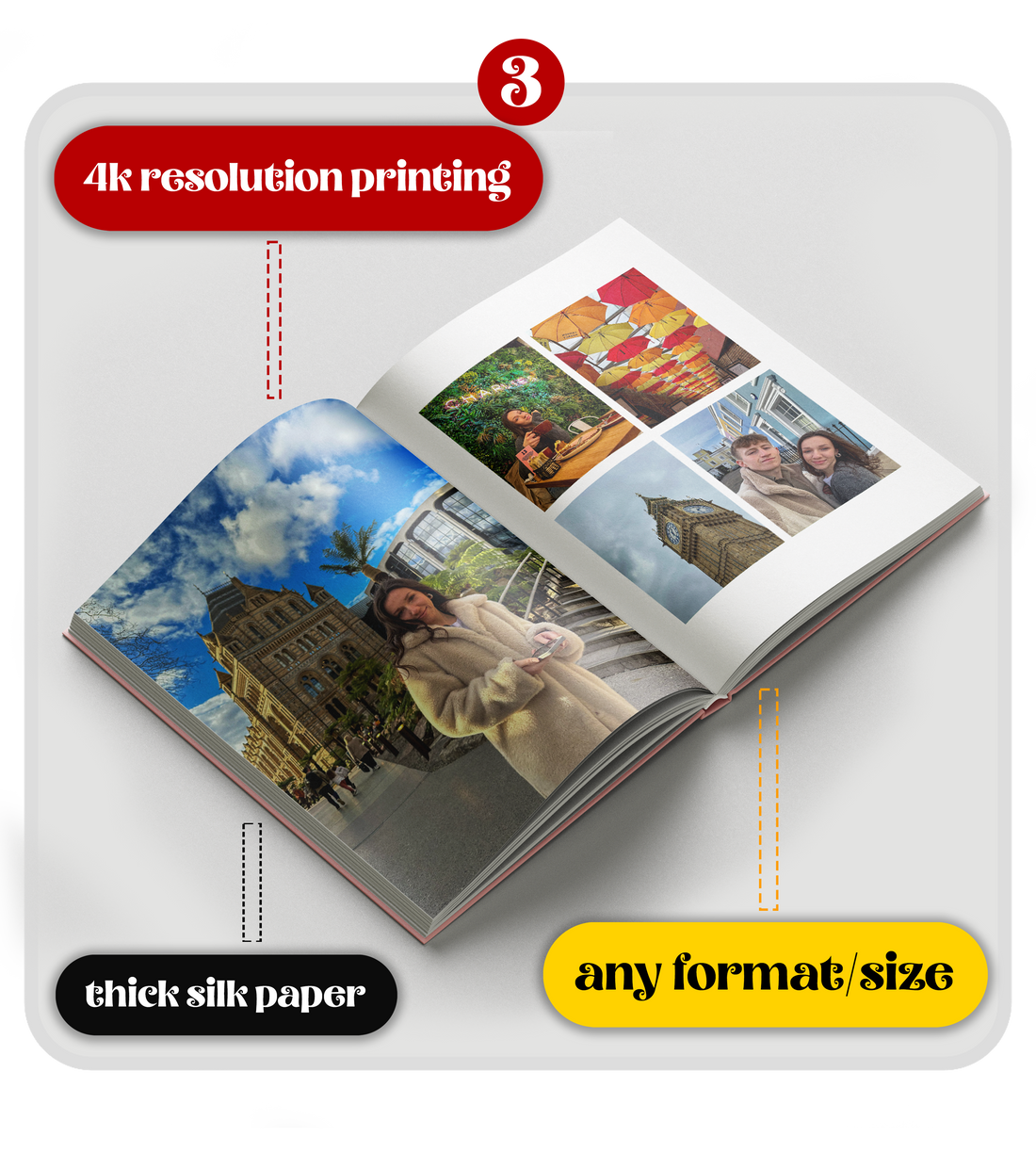 We make it easy to turn your favourite moments into high-quality, fully customizable photobooks. Designed by you, crafted by us with premium materials.